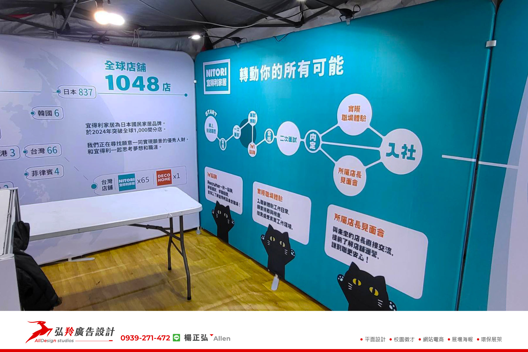 企業聯合徵才 炫光布展架 寬300x250cm的主視覺,總重量僅僅八公斤;卻可以帶著他跑遍各大專院校,美觀大方、環保省錢且安裝方便。 了解更多 2024 校園徵才活動 炫光布展架 寬300x250cm的主視覺,總重量僅僅八公斤;卻可以帶著他跑遍各大專院校,美觀大方、環保省錢且安裝方便。 了解更多 more 更多作品 緯創資通校園徵才 家登精密校園徵才 台灣山葉機車校園徵才 慧邦科技校園徵才 momo富邦媒體校園徵才 宜得利家居校園徵才 大陸工程校園徵才 貿聯國際校園徵才 億光電子校園徵才 仁寶電腦校園徵才 兆豐證券校園徵才 阿特拉斯科普柯集團校園徵才